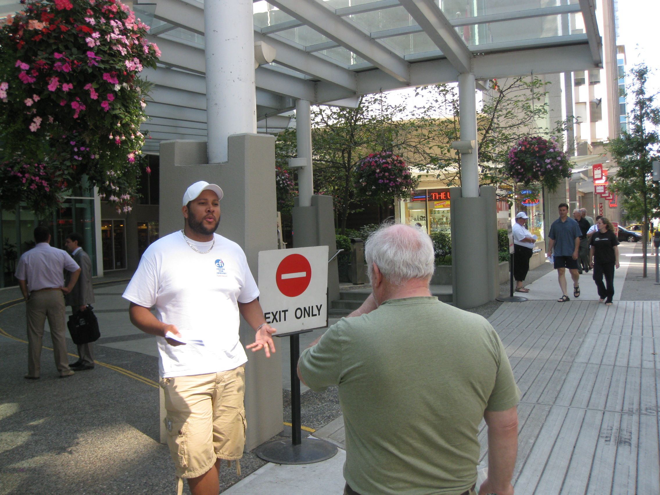 The highlight for me was meeting Debbie, an attendee who came outside to ask us why we were there. Debbie felt that we were being uncharitable, and calling people stupid for not doing the research themselves. She told me that until you’ve had a supernatural experience, you have no right to criticize someone else’s search for truth. I told Debbie that I had indeed had several experiences that I attributed to supernatural causes, but once I had been exposed to better information and given the opportunity to make up my mind, I was grateful to have learned something. I also pointed out that we were no more calling people stupid than a public health campaign for hand-washing was calling people stupid – we are merely presenting people with information that we think could help them. She was not entirely swayed by my argument, although she did laud us on our non-confrontational style and general affability.